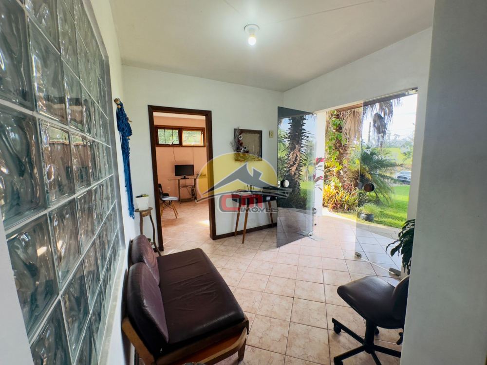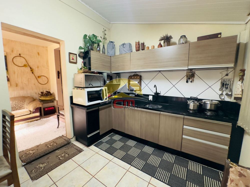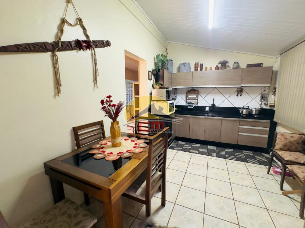 Casa de alvenaria com 2 dormitórios, sendo um deles uma suíte com hidromassagem. O imóvel possui uma sala de estar espaçosa, uma cozinha funcional e um banheiro social completo. A construção é sólida, com laje e telhado com telhas de cerâmica esmaltada.