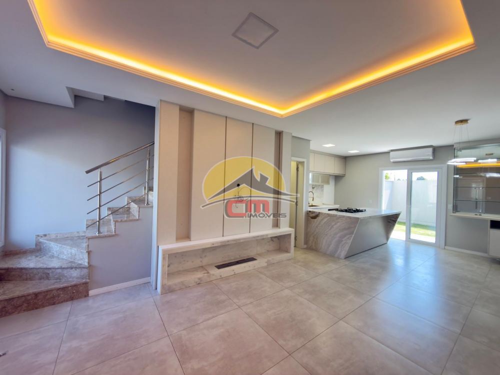 O imóvel conta com 3 dormitórios, sendo 1 suíte, closet, lavabo, banheiro social com iluminação natural, cozinha com móveis planejados e bancada de mármore, sala com painel de tv e lareira, área de serviço com churrasqueira e lavanderia fechada. Todas as aberturas em alumínio e PVC.