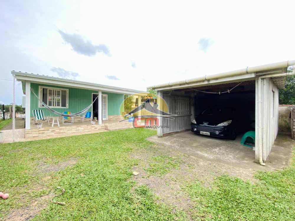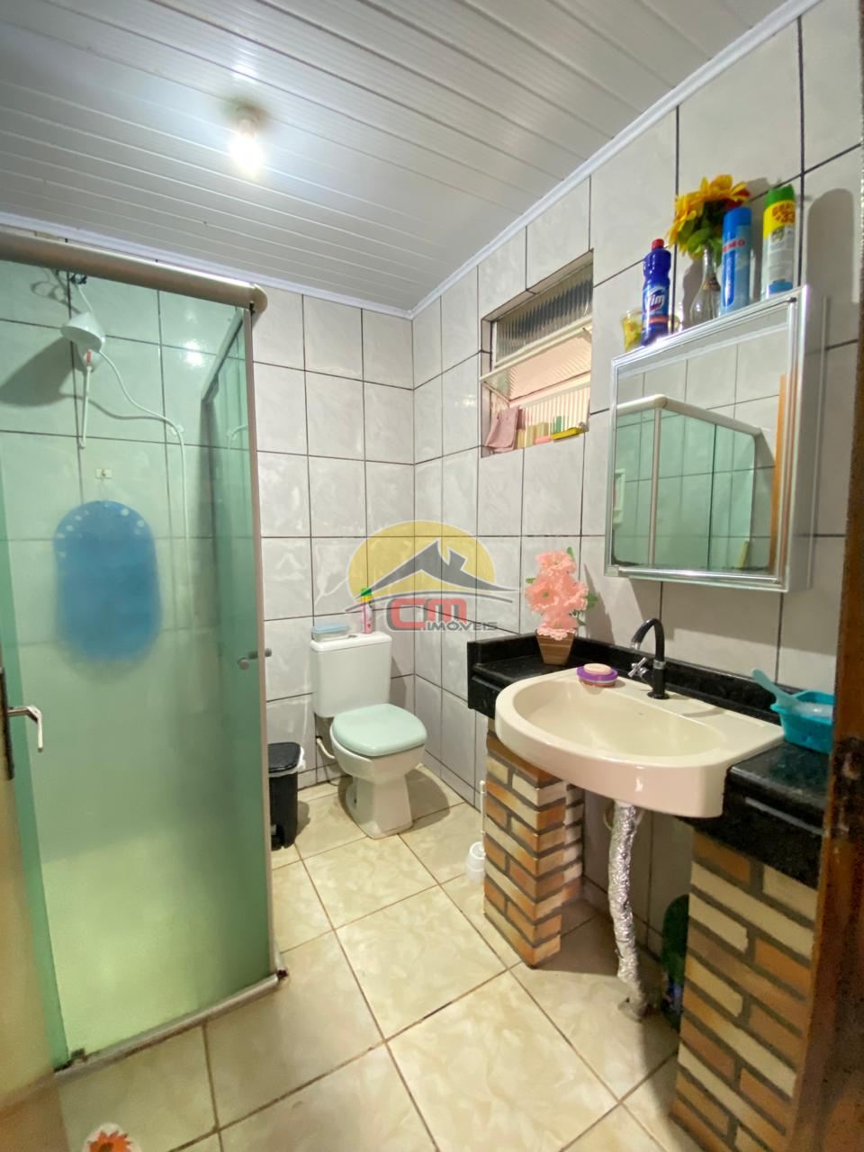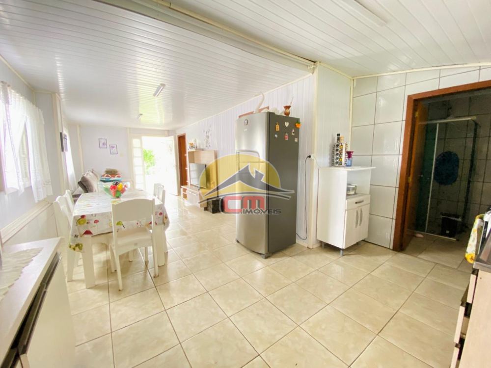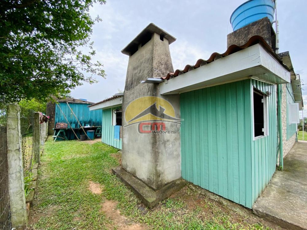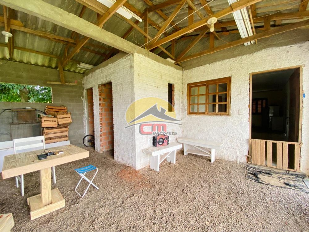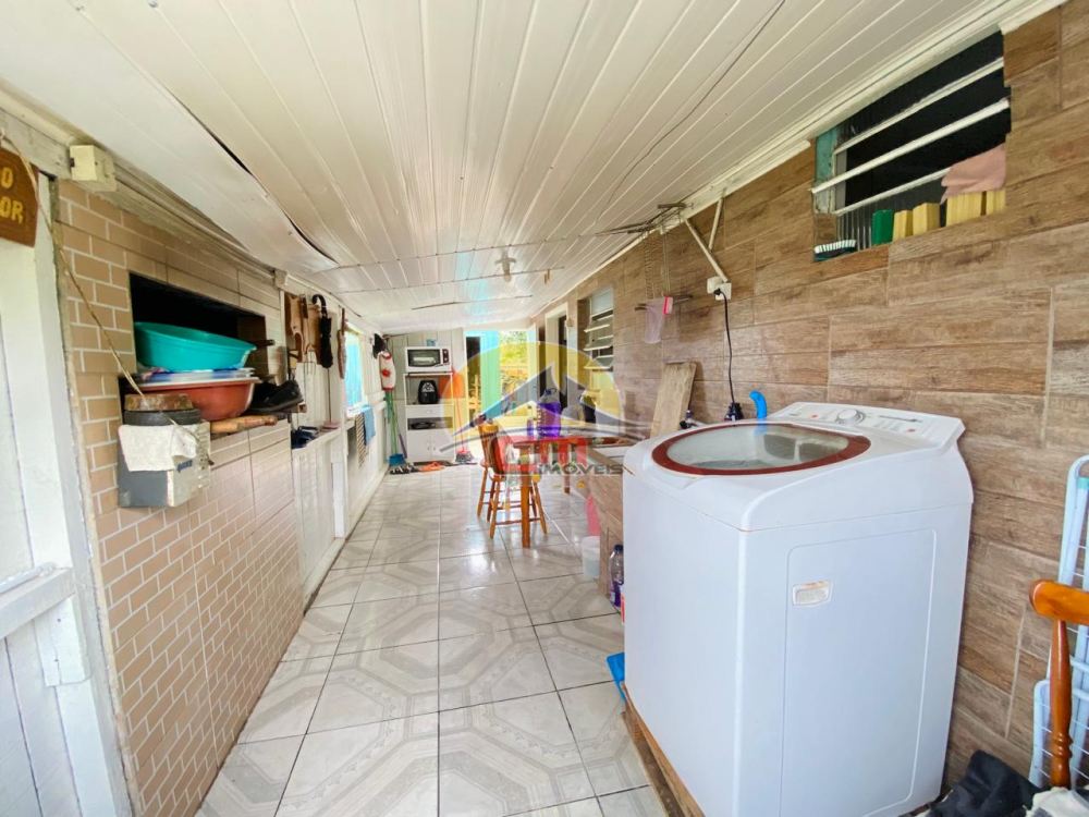 A segunda casa, de madeira, conta com 2 dormitórios, sala e cozinha, 1 banheiro, área com churrasqueira e lavanderia.