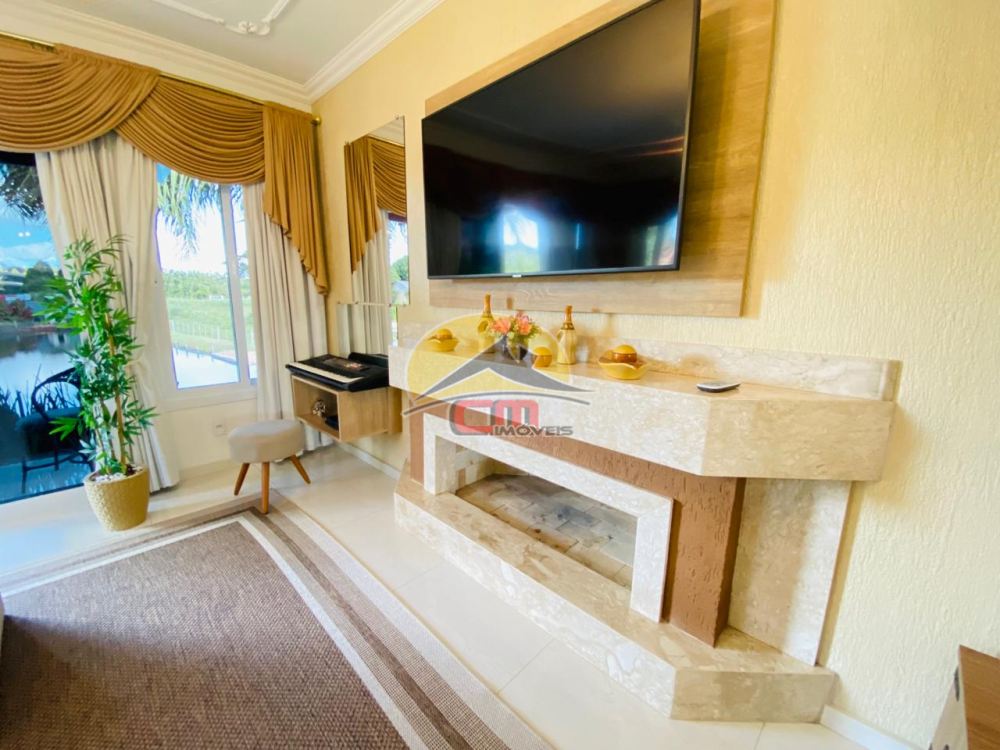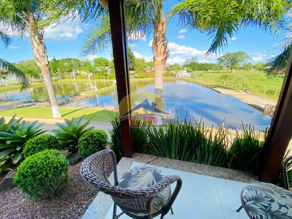 Com uma bela residência de 120,00m², oferece uma suíte ampla, dois dormitórios, um banheiro social e um lavabo. Desfrute da vista para dois lagos da ampla sala e da cozinha. Garagem para dois carros, casa com laje e telhado em cerâmica esmaltada.
