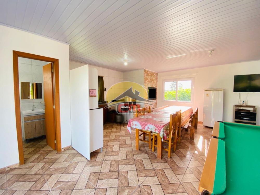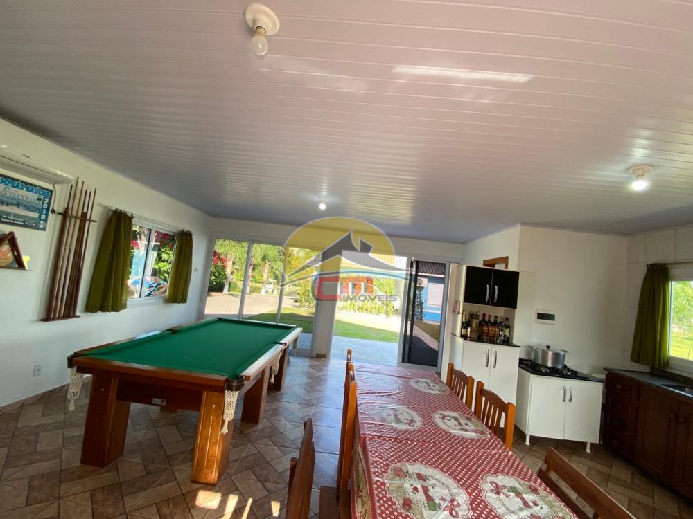 Além disso, um salão de festas com fogão a lenha, churrasqueira e mesa de sinuca.